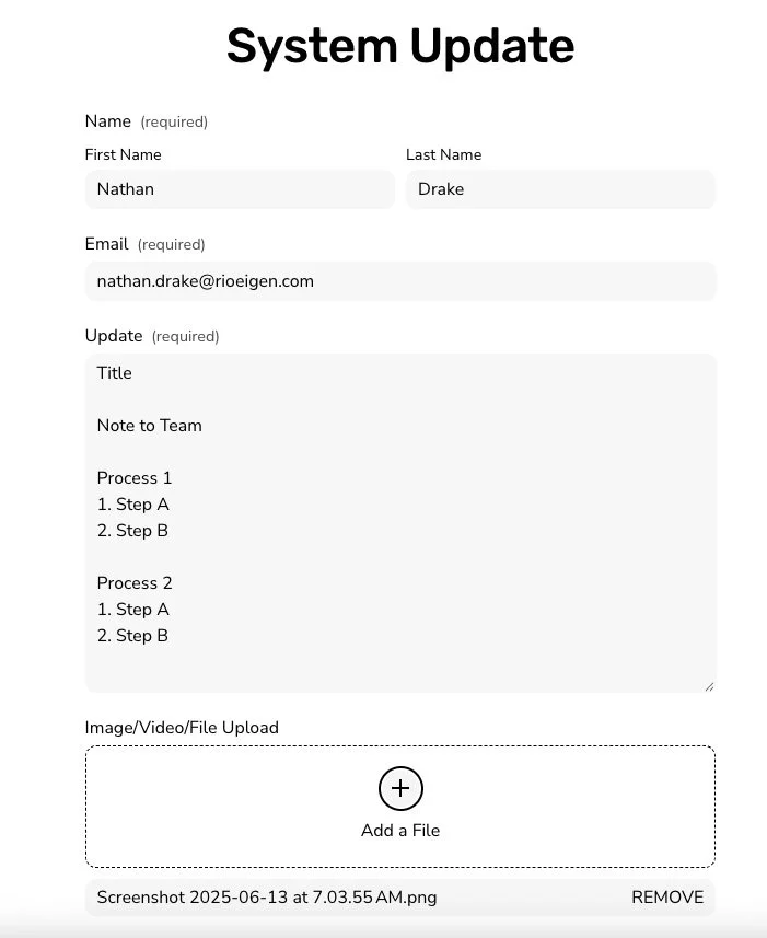 Create the system. Copy, paste and format the Title, Note to Team, Process and Steps and any files onto the page. Make sure it’s compatible in both desktop and mobile view.